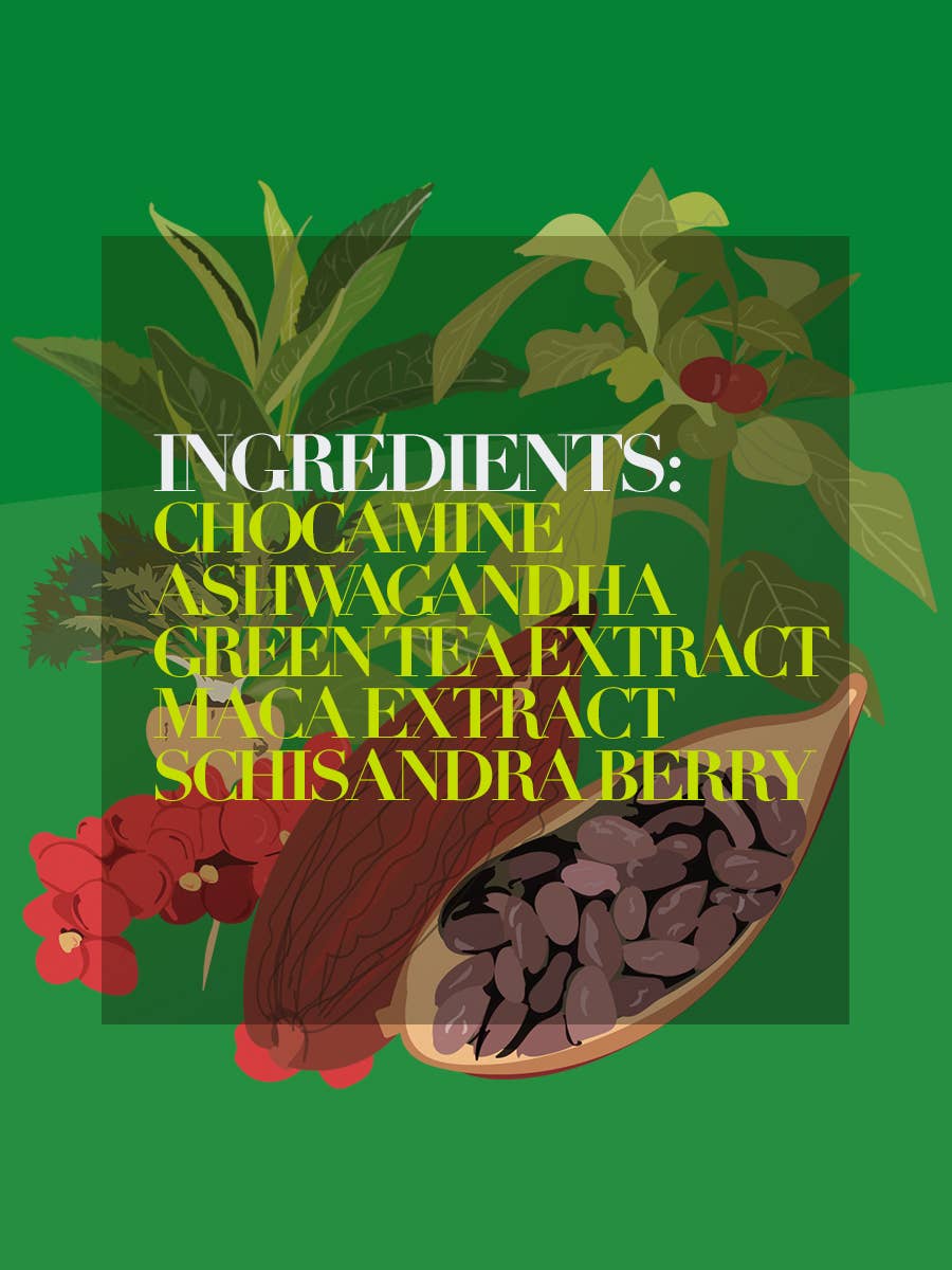 Functional Dark Chocolate formulated to address the issues associated with low energy. Clinically researched ingredients supported with vitamins, herbs & minerals, delivered in delicious dark chocolate.