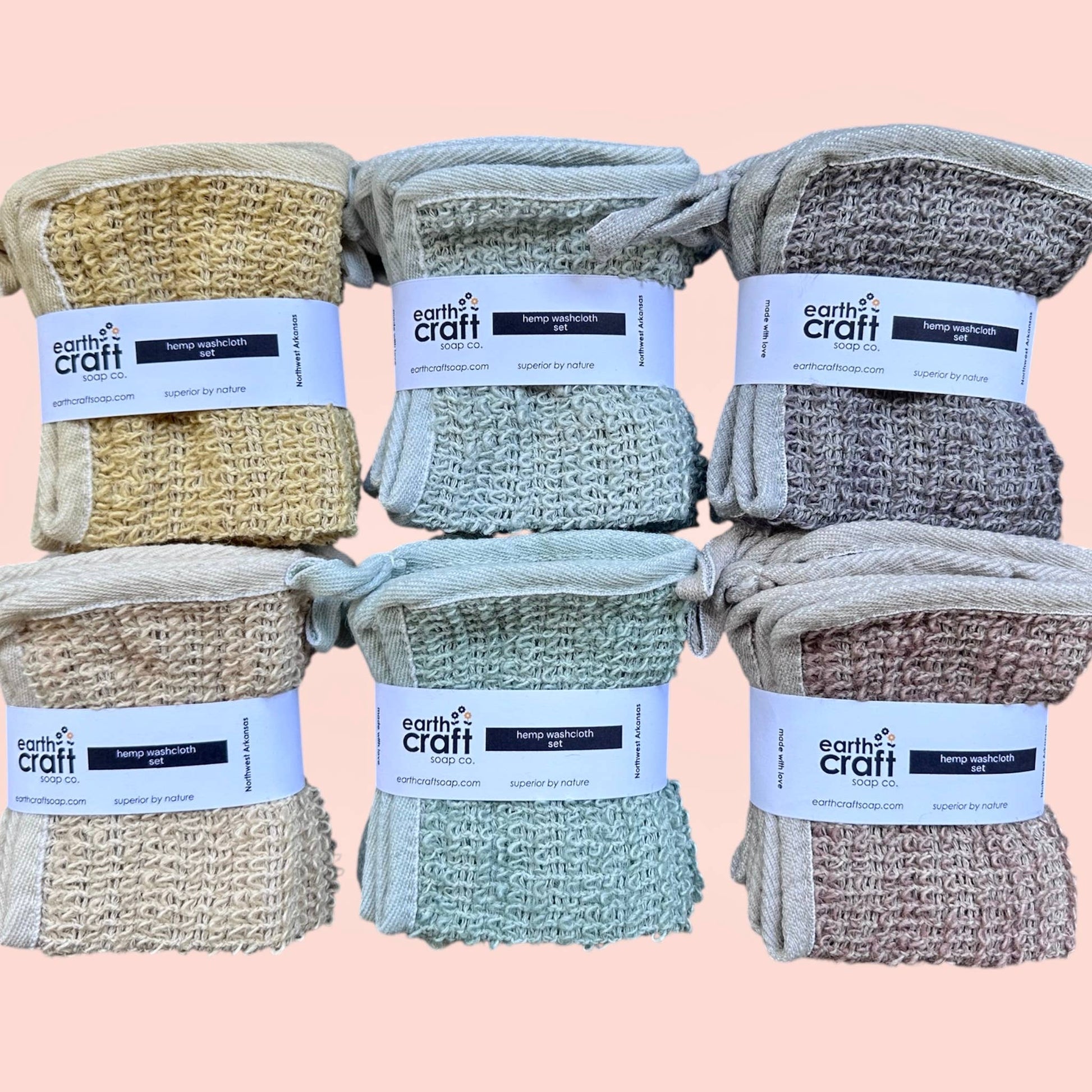Hand-dyed hemp washcloth set of 3 in rich, single-color packs. Sustainable, antimicrobial, and durable—perfect for spa, bath, kitchen, and eco-friendly gift bundles.