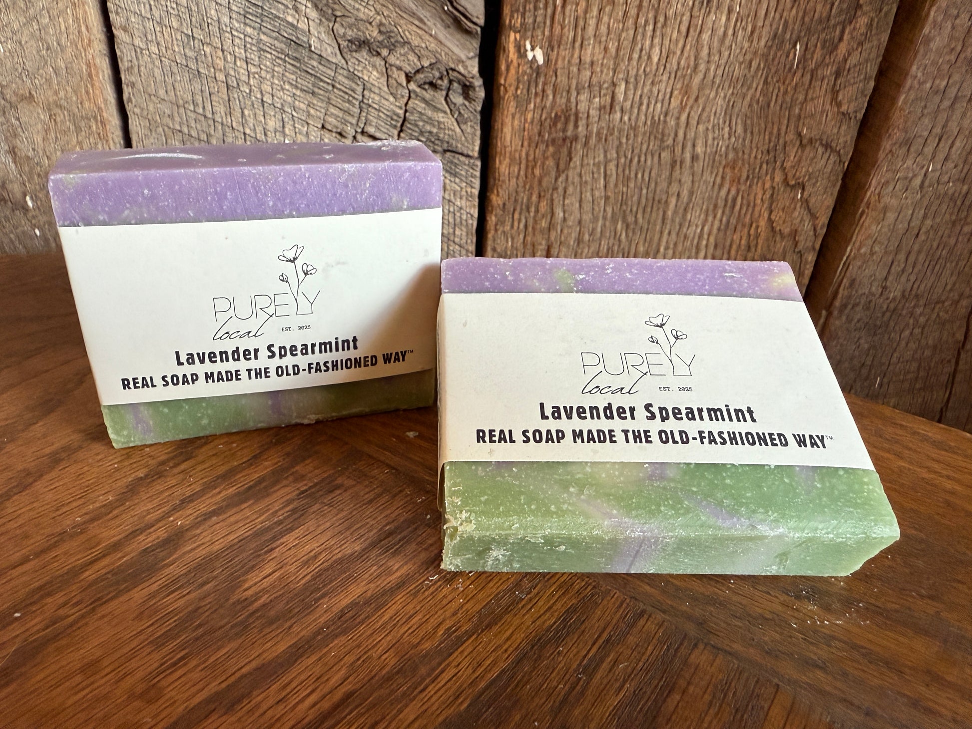 This is one of our most popular soaps. Not only it is very pretty, with purple, cream and greenish swirls, but the scent is also heavenly. The combination of the floral lavender with the uplifting sweet scent of spearmint is a sure pleasure to hold close to your skin.