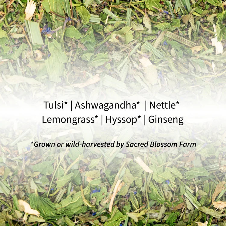 Our adaptogenic, coffee replacing herbal tea! The primary ingredient in Tiger is Tulsi (Holy Basil), India’s most sacred herb. Coupled with Ashwagandha and Ginseng, these adaptogen herbs are known to help the body adapt to stress and normalize bodily functions. Tiger is our top daily-drinker tea for boosting yang & positive energy!